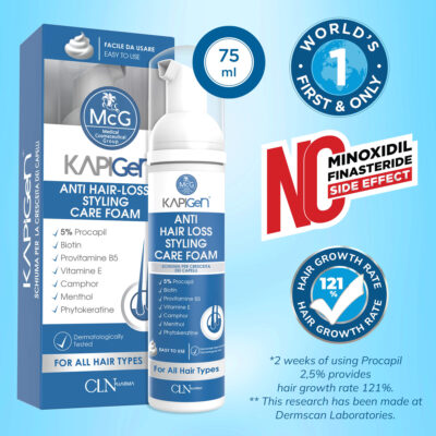 McG KAPIGEN Scalp Care Foam is our foam-based product that we produce for the treatment of hair loss and also allows users to styling their hair.